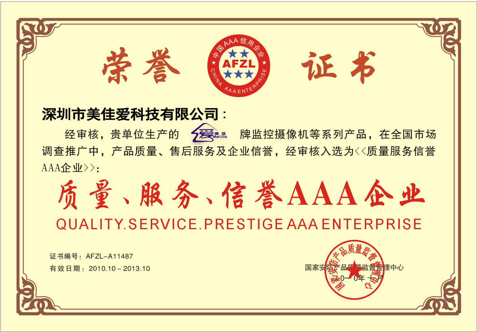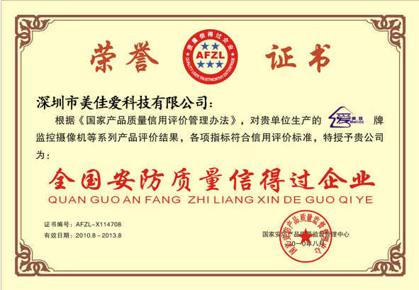 全國(guó)安防質(zhì)量信得過(guò)企業(yè)證書(shū)副本